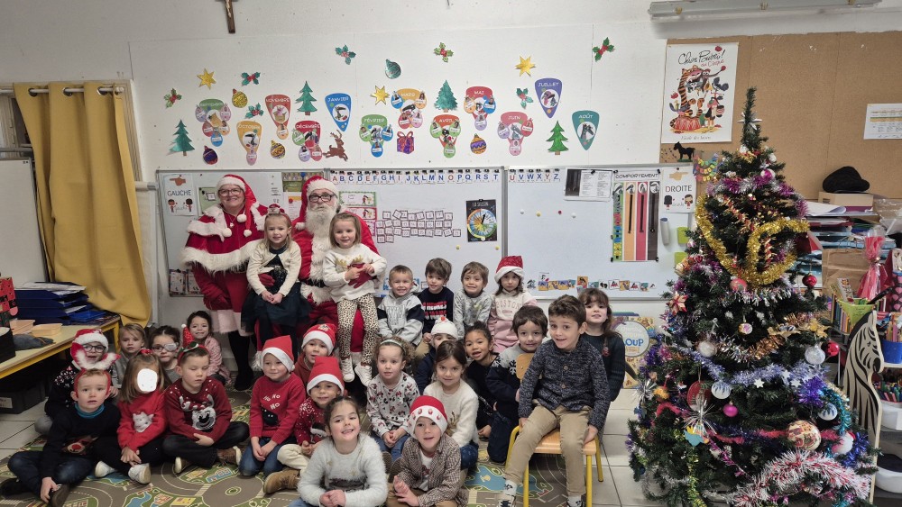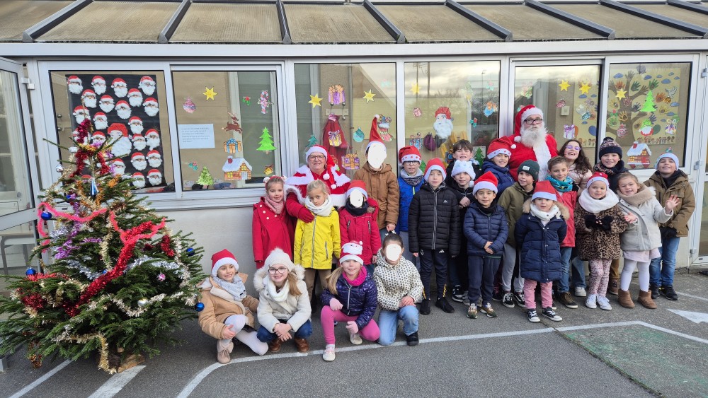 Le 20 décembre, quelle surprise de recevoir dans notre école le Père et la Mère Noël!!!Nous avons dansé ensemble sur la cour, pris des photos!!!