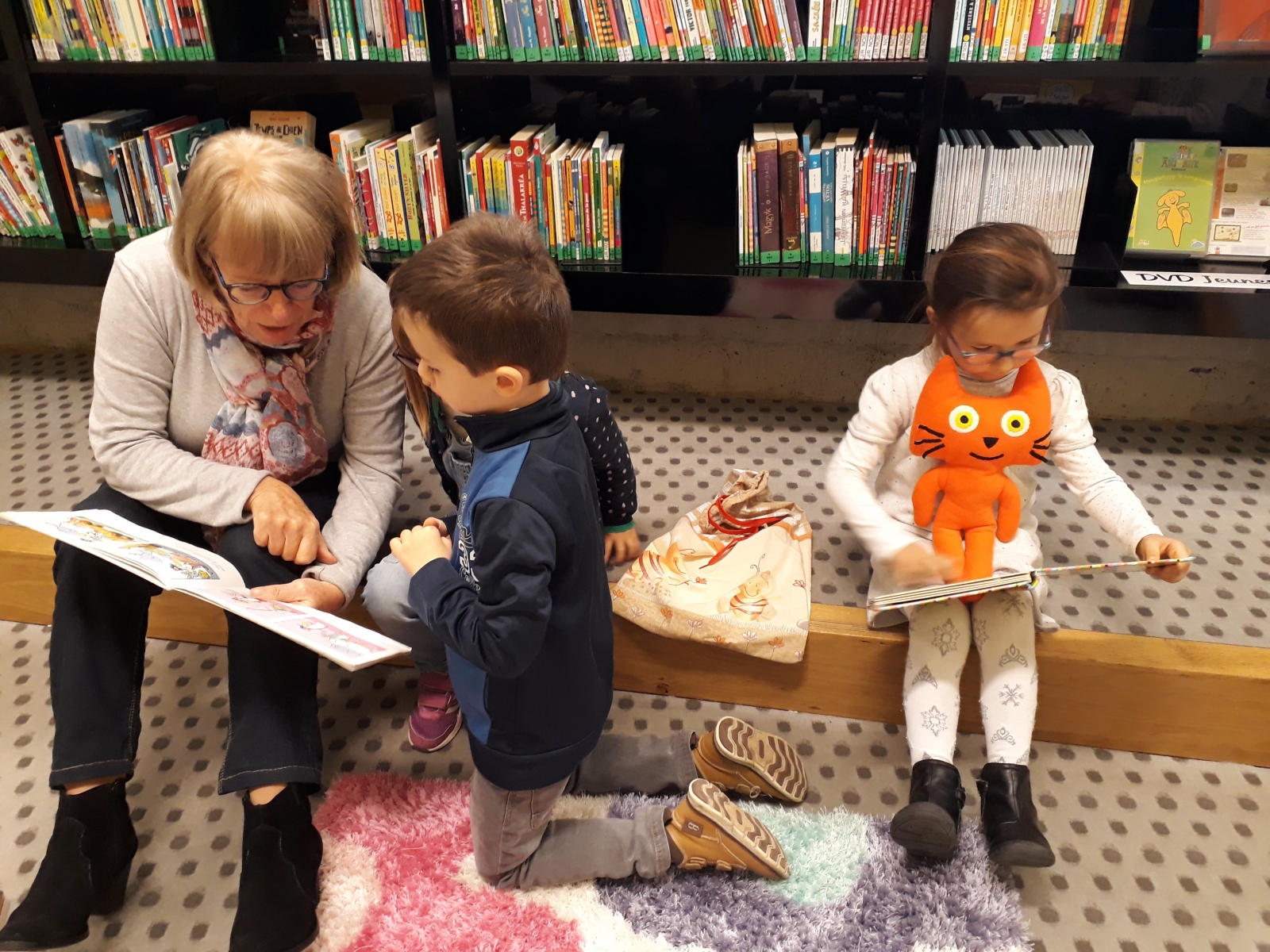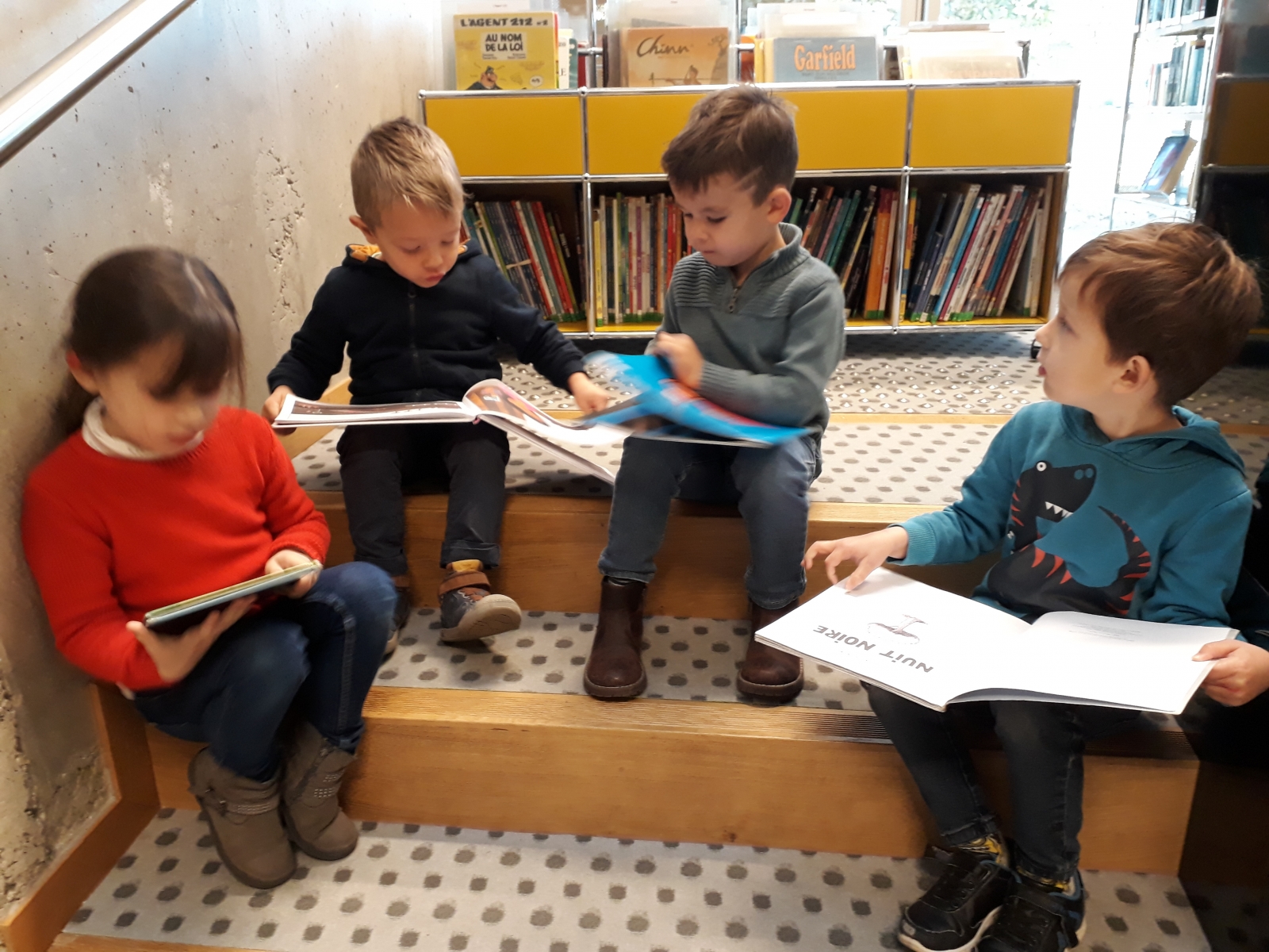 « Les dames de la bibliothèque nous ont lu des histoires. Après, nous pouvions regarder des livres. Et après, les dames de la bibliothèque, Mélanie et Angélique pouvaient nous lire des histoires ».